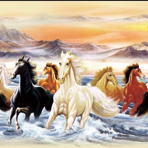 Tranh Bát Mã 023/ In Trên Chất Liệu Vải Lụa Kim Tuyến Nguyên Khổ