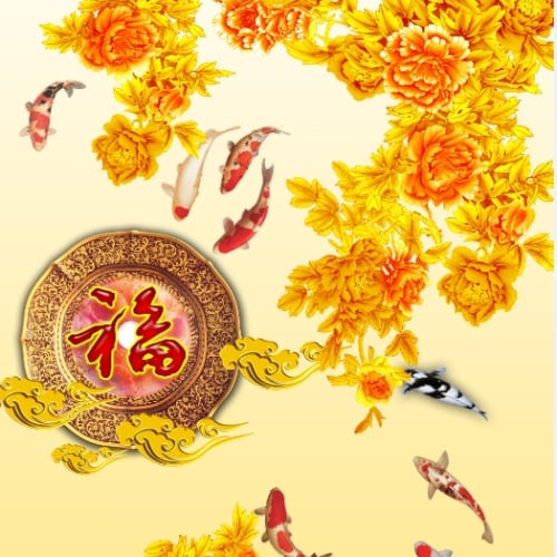 Tranh Cửu Ngư 054/ In Trên Chất Liệu Vải Lụa Kim Tuyến Nguyên Khổ