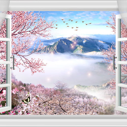 Tranh Cửa Sổ 005/ In Trên Chất Liệu Vải Lụa Kim Tuyến Nguyên Khổ