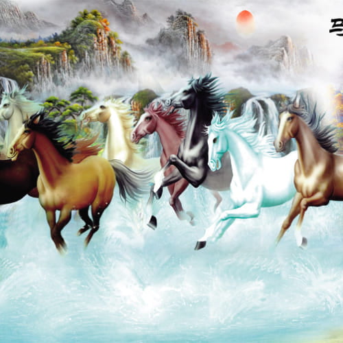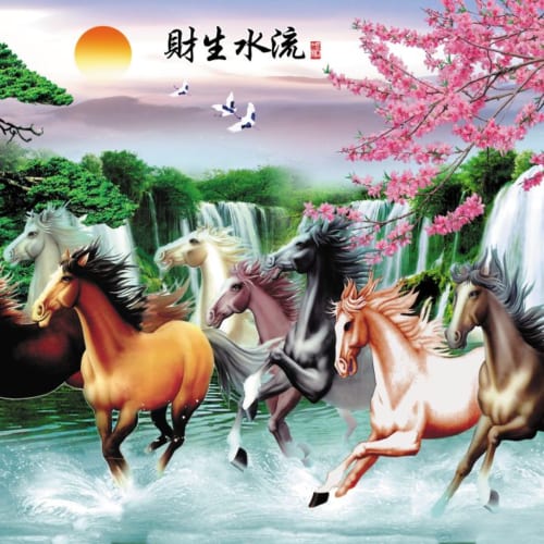 Tranh Bát Mã 005/ In Trên Chất Liệu Vải Lụa Kim Tuyến Nguyên Khổ