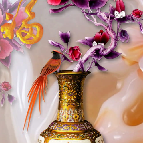 Tranh Bình Hoa 011/ In Trên Chất Liệu Vải Lụa Kim Tuyến Nguyên Khổ