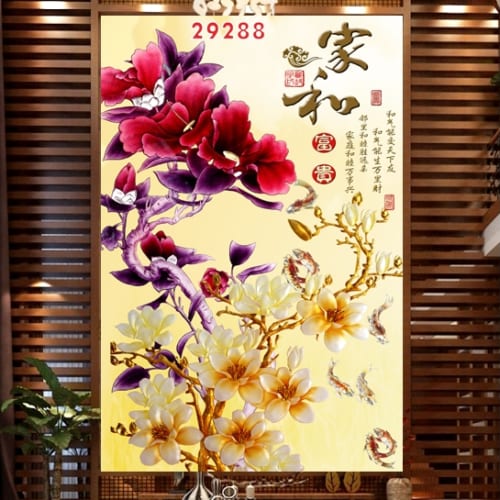 Tranh Ngọc 3D 0018/ In Trên Chất Liệu Vải Lụa Kim Tuyến Nguyên Khổ