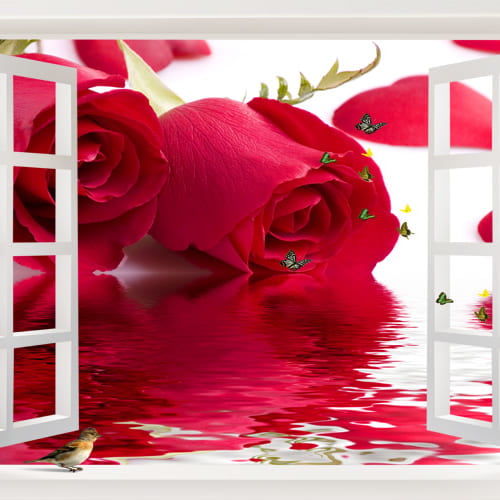 Tranh Cửa Sổ 008/ In Trên Chất Liệu Vải Lụa Kim Tuyến Nguyên Khổ